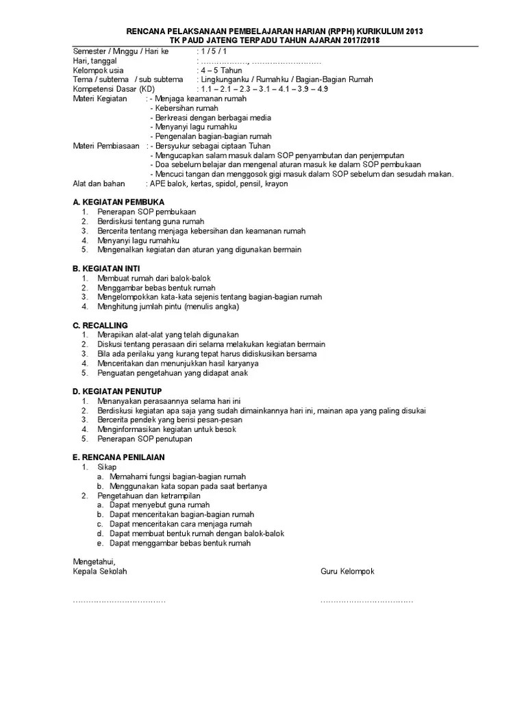 Contoh rkh rpph paud tema diri sendiri tubuhku k13 paud. Fasilitas rumah, peralatan rumah, perlengkapan . Tema / sub tema : Contoh rppm paud tema lingkungan sekolahku baca juga. Postingan kali ini admin akan membagikan contoh rpph paud dengan tema dan sub tema lingkunganku.
